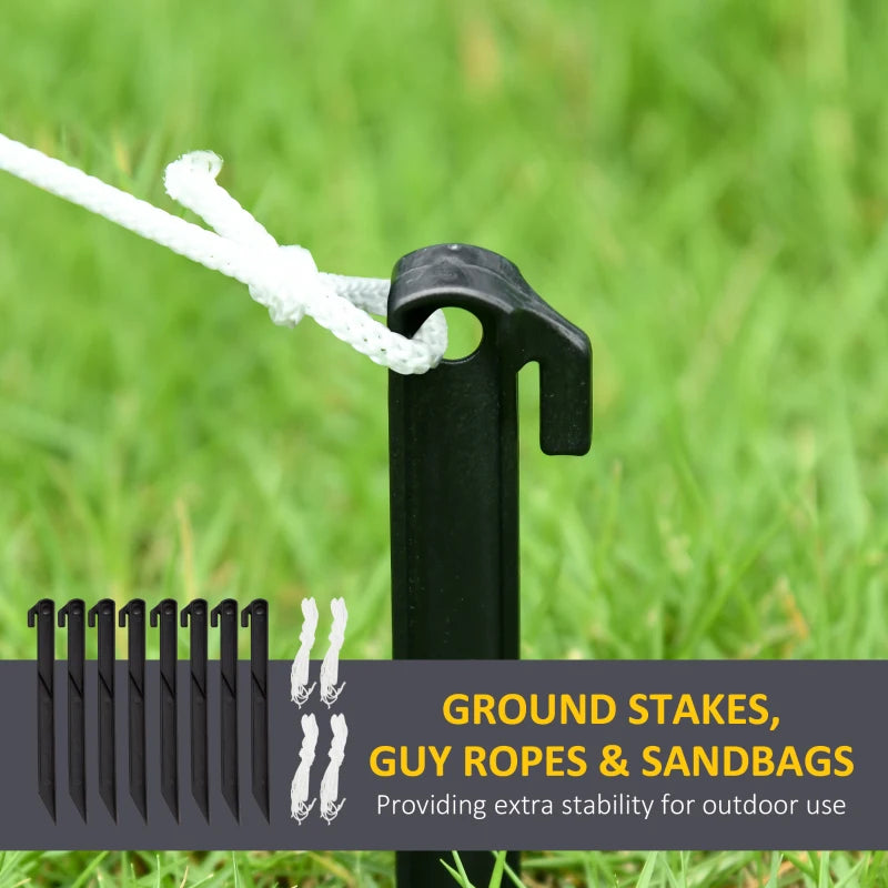 - Accessories included: Eight ground stakes, four guy ropes and two sandbags. Large outdoor Christmas decoration keeps weighted and stays in place against windy weather